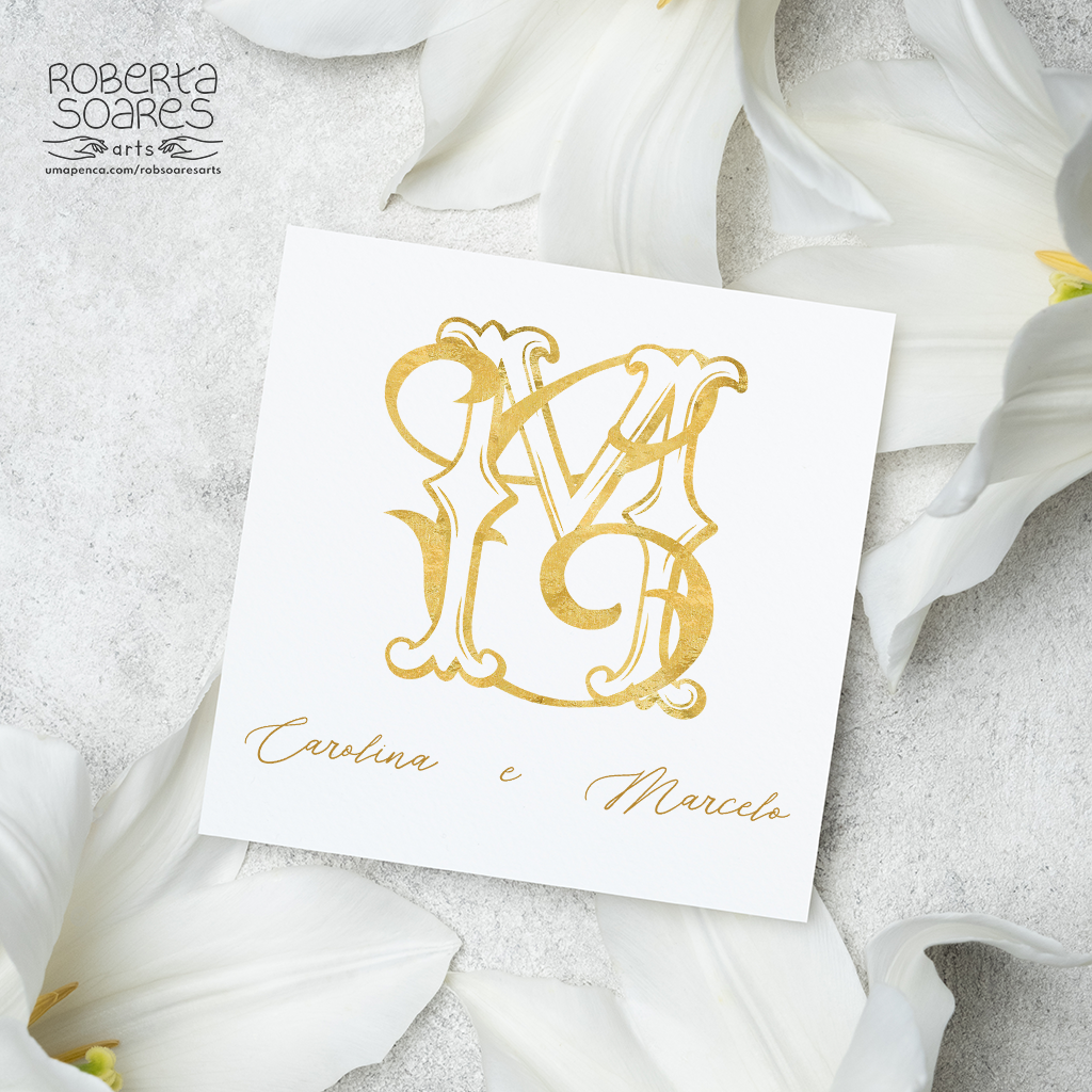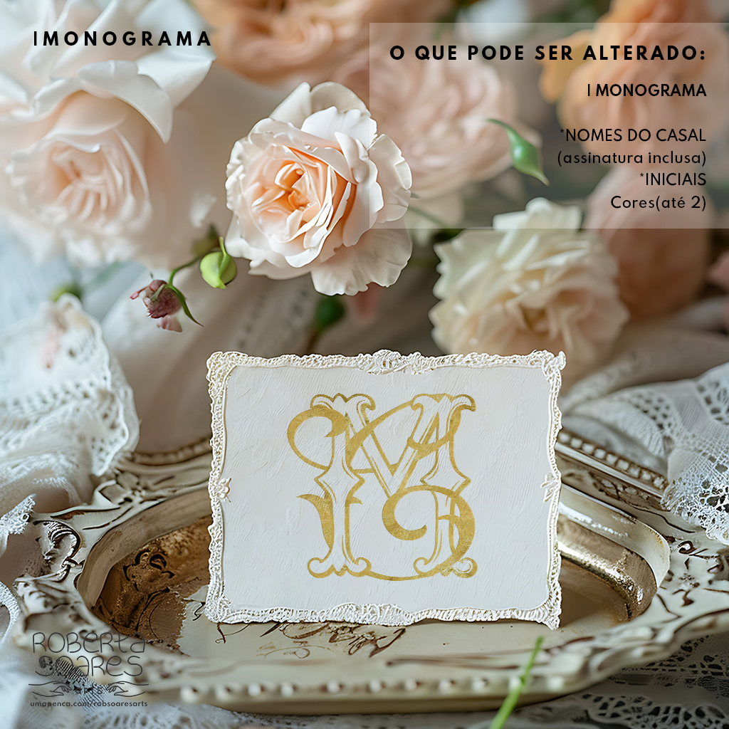 O cliente escolhe o monograma, sem alterações no layout escolhido, serão substituidas as iniciais, o nome dos noivos(assinatura) e as cores . Após a confirmação do pagamento e envio das informações o monograma será enviado em até 2 dias úteis. Os arquivos serão enviados via link para o Whatsapp da cliente.