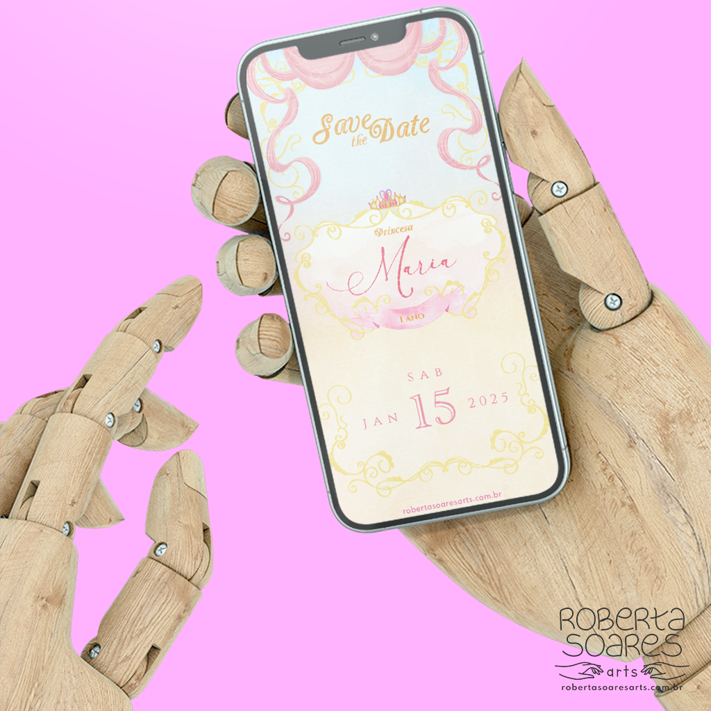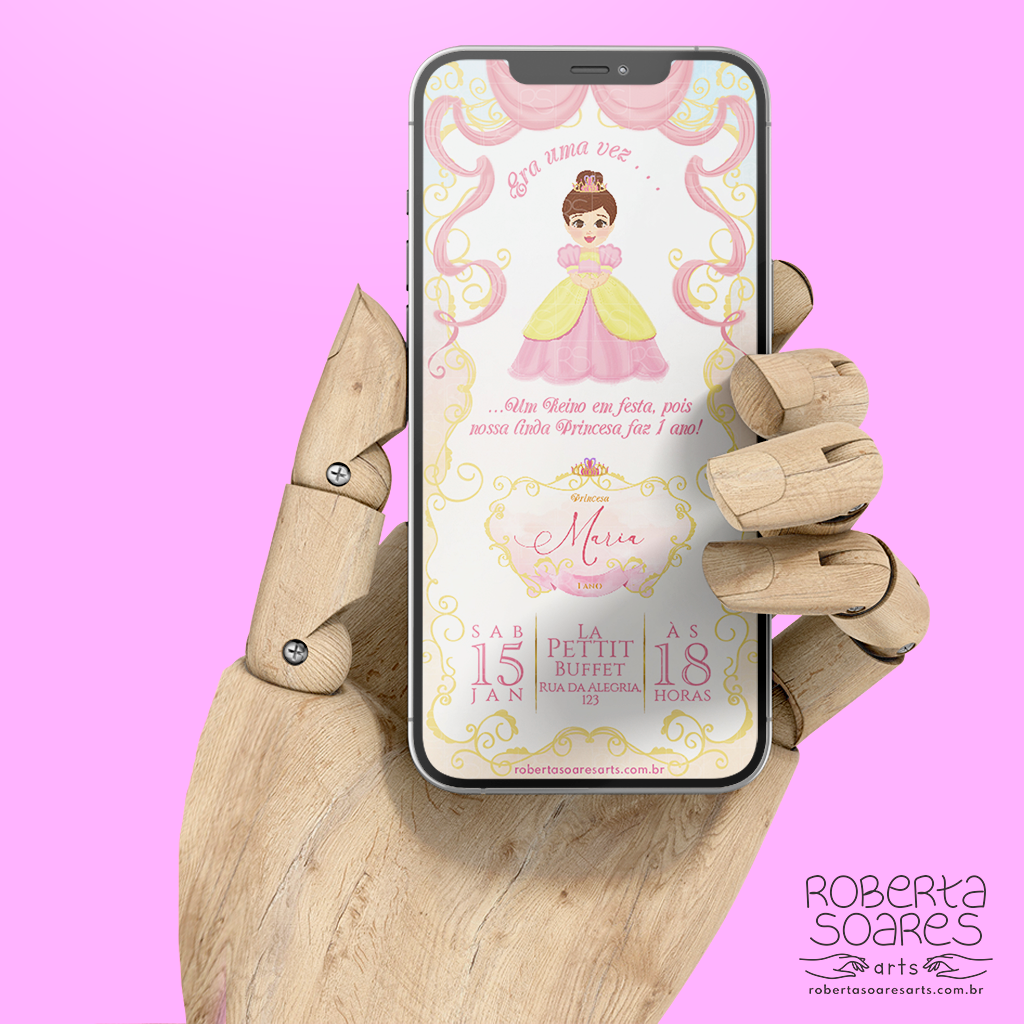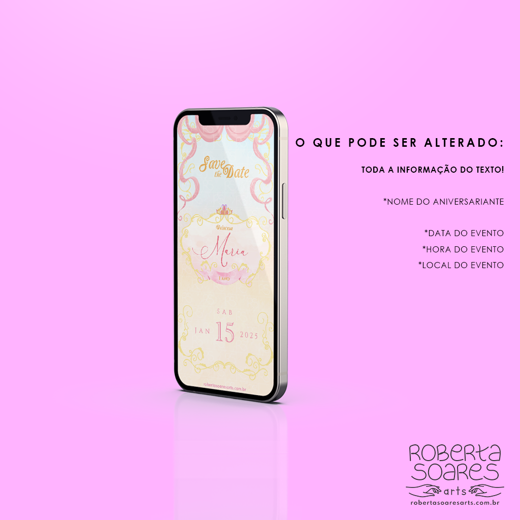 O cliente escolhe o tema, sem alterações no layout escolhido, serão adicionados, as informações do evento, e o nome do aniversariante/casal na logo/monograma, e escolhe o personagem que mais se encaixa no perfil do aniversariante no layout já existente. Após a confirmação do pagamento e envio das informações o convite será enviado em até 2 dias úteis. Os arquivos serão enviados via link para o Whatsapp da cliente.
